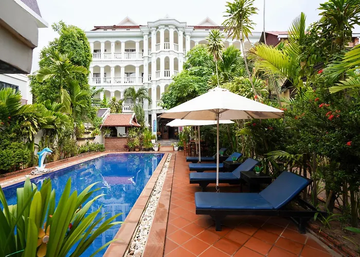 Das Hotel Tan Sokchea Boutique Siem Reap in Siem Reap bietet Spa-Therapie und Spa-Dienstleistungen und ist circa 8 Gehminuten von der Pub Street entfernt. In rund 600 Meter Entfernung vom Marktplatz gelegen, verfügt das Hotel über einen Swimmingpool, wo sich die Gäste entspannen können.